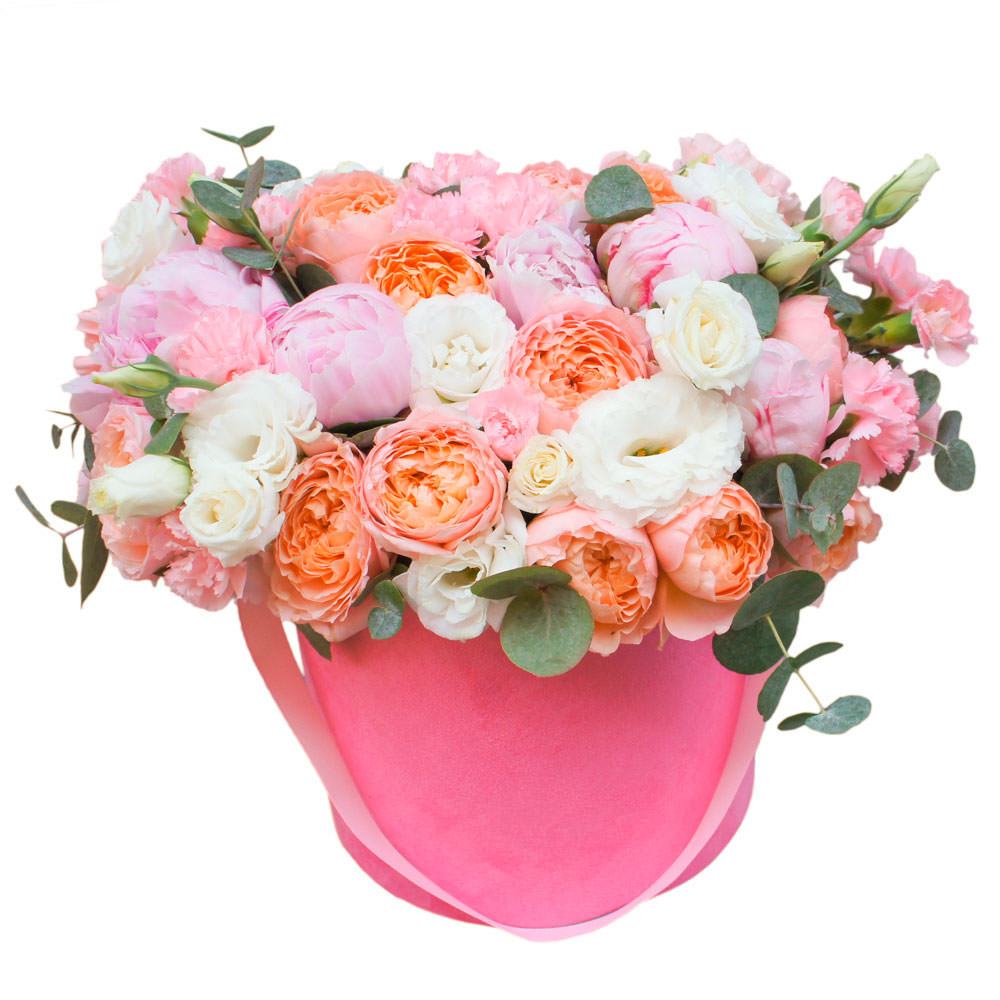 На фото представлен образец. Объем коробки зависит от выбранного вами размера. Точное количество цветов и цветовую гамму вы можете уточнить у менеджера по телефону.